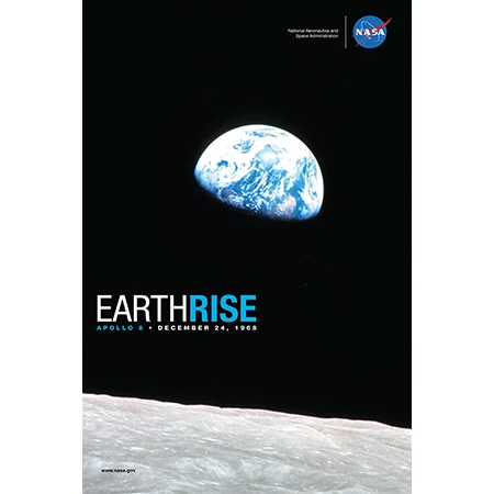 Taken aboard Apollo 8 by Bill Anders, this iconic print shows Earth peeking out from beyond the lunar surface as the first crewed spacecraft circumnavigated the Moon.