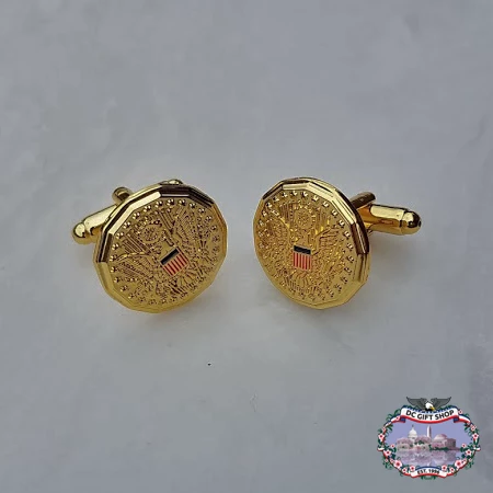 For the classic look with a historical flair, choose the Washington DC souvenir Great Seal gold cufflinks. The Seal is die struck, 7/16 diameter polished gold electroplate. Swivel cuff link action attached. These mens cufflinks will brighten your shirt by adding a personal touch of your choice.