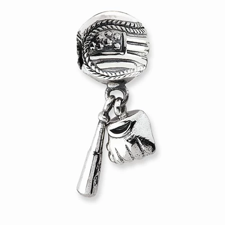 Sterling Silver Reflections Baseball, Bat & Glove Dangle Bead