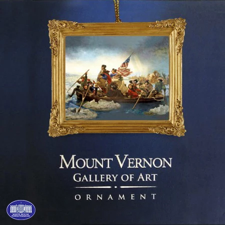 Mount Vernon’s Gallery of Art ornament is an image of artist Emanuel Leutze’s painting of the 1776 events in an antiqued gold resin frame.